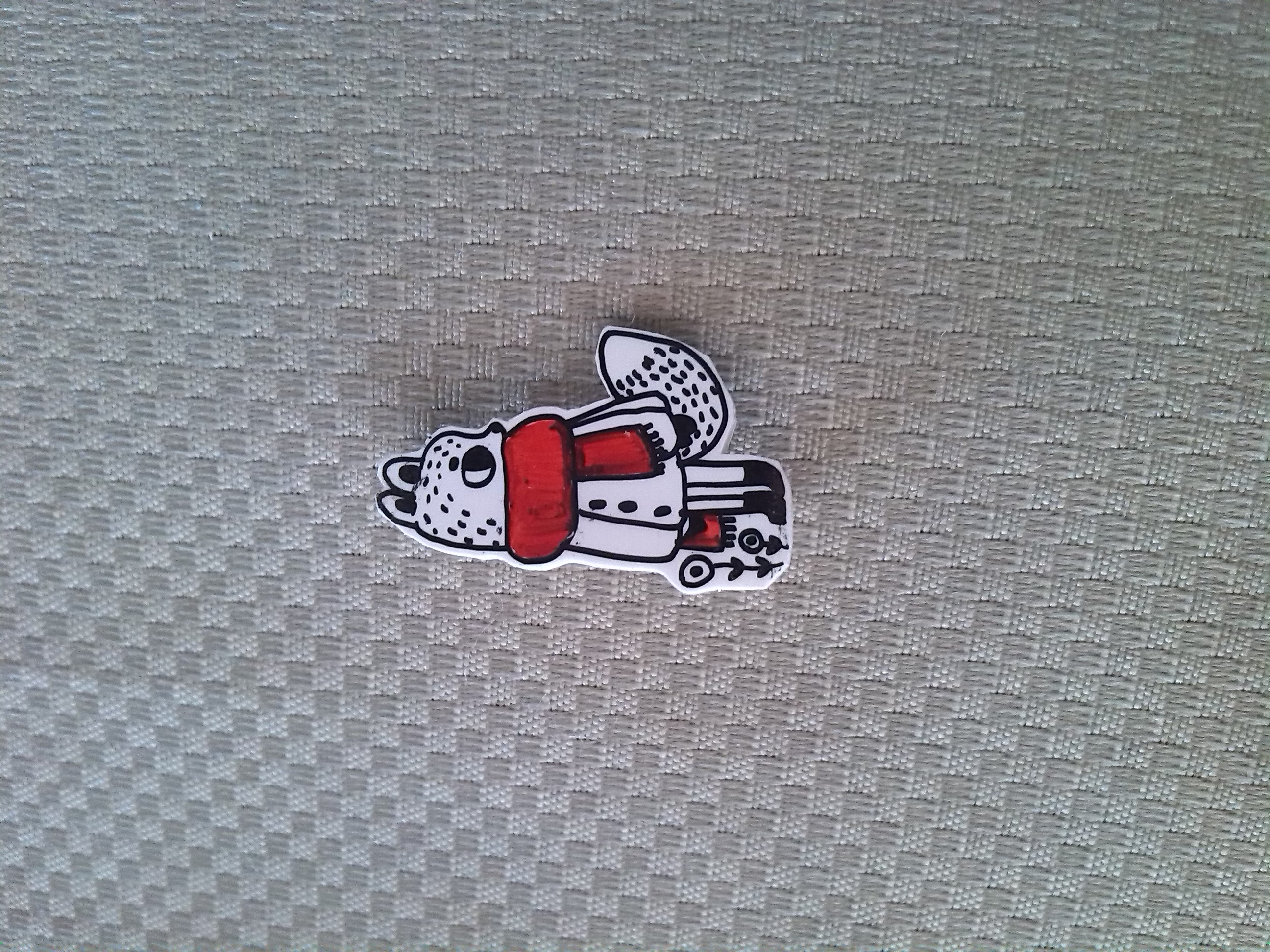 shrink plastic pin badge (probably dont put it through the wash ok)