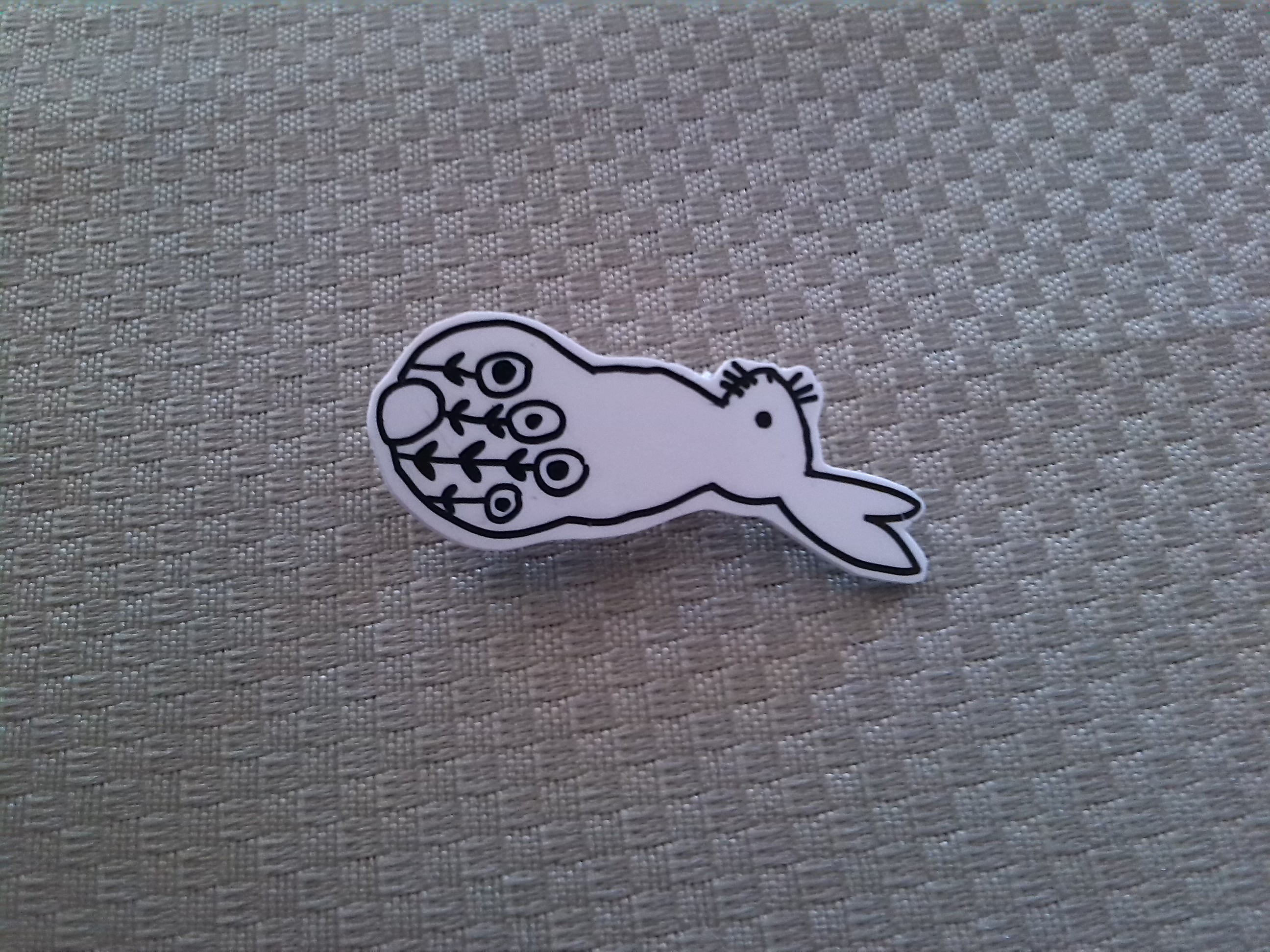 shrink plastic pin badge (probably dont put it through the wash ok)